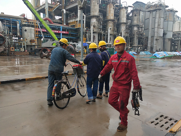 雨水濕透了他們的衣服,模糊了他們的雙眼,但阻擋不了他們的熱情。每個參檢人員不畏嚴寒、不怕辛苦,認真地完成每一項工作任務。他們吃苦耐勞、勇挑重擔,他們?yōu)槠髽I(yè)無私奉獻的敬業(yè)精神,儼然是這裝置區(qū)內(nèi)最美的風景。