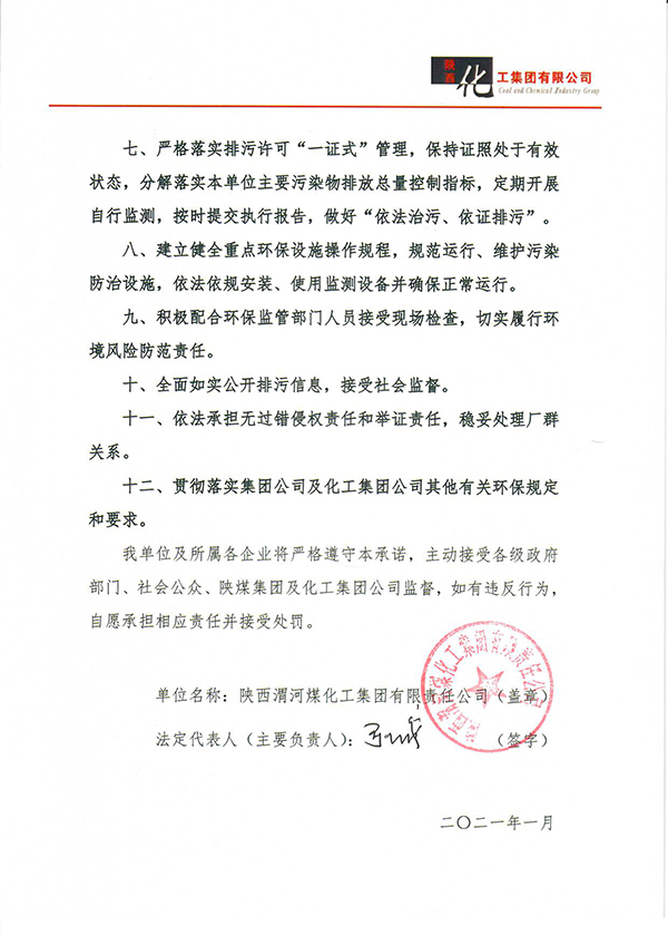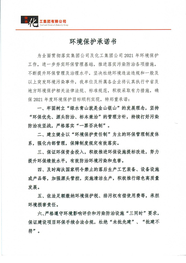 渭化公司2021年環(huán)保承諾書對外公示