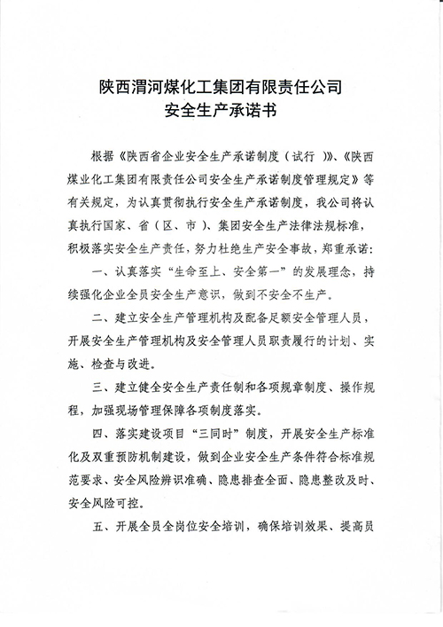 渭化公司2021年安全生產(chǎn)承諾書對外公布