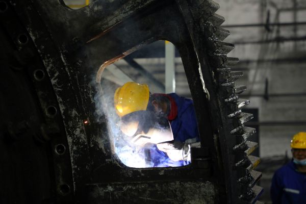 夜幕降臨,喧鬧了一天的裝置現(xiàn)場(chǎng)漸漸安靜下來(lái),而有一群人的工作才剛剛開(kāi)始。