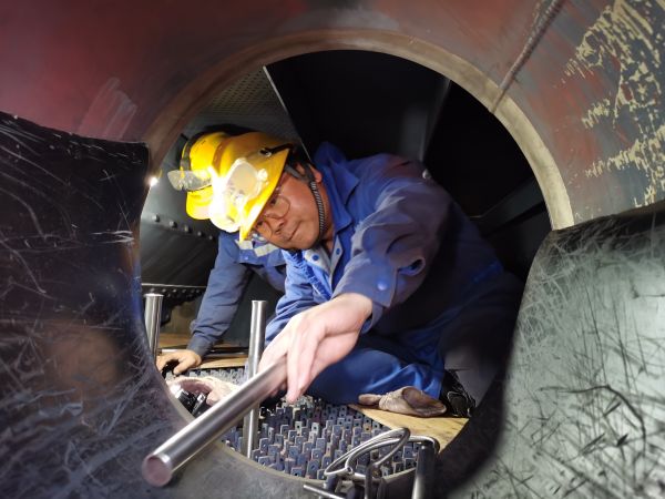 克服空間的狹小,設(shè)備的悶熱,一個個未“出圈”的身影,讓我們肅然起敬;從設(shè)備封頭、人孔處爬出,一張張掛滿汗珠的臉龐,讓我們頻頻感動。沒有豪言壯語,沒有驚天動地,有的只是默默無聞、腳踏實地。雖未“出圈”,他們卻用實際行動詮釋著檢修人最出彩的模樣。