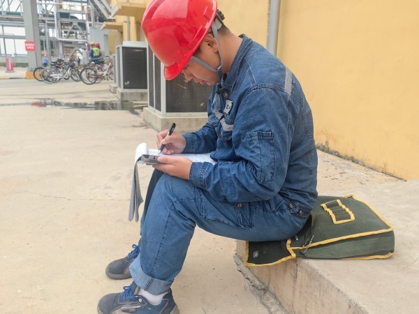 檢修人員現(xiàn)場書寫