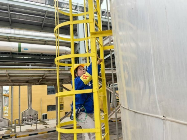 面對數(shù)十米甚至幾十米的裝置高度,分析女工與男同志一樣,憑借日復一日鍛煉出的體能,一步一步向上攀爬,汗水浸濕衣衫卻從不輕言放棄,在體力消耗的極限處展現(xiàn)出不輸男性的持久力。